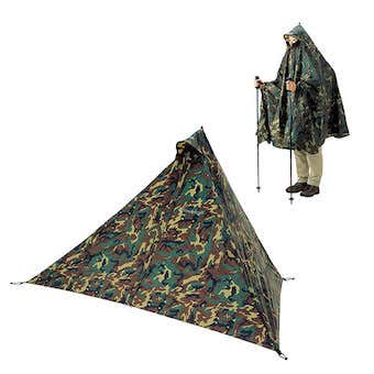 ポンチョは、大きなザックを背負ったままでも着用できます。ハイキングやフェスなどにも使えます。