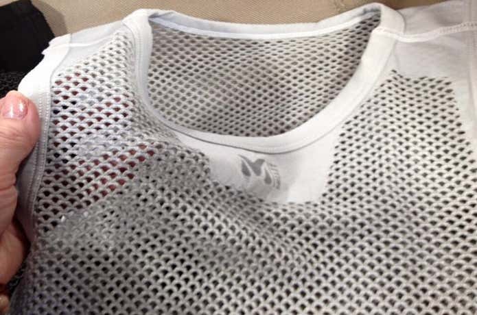 汗をかきやすい脇もカバーされているので助かる一枚。女性は、Lサイズまでの人はS/Mを選択。速乾性の高いスポーツブラの着用を推奨しています。
