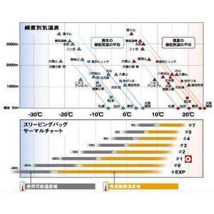 ‐15℃以下になる冬山で使用する場合などでは、ダウンジャケットなどの防寒着を着込んで寝ることを前提に、快適温度‐8℃、下限温度‐15度程度を目安にするなど、山の気温、各人の体力や装備等に合わせて選んでください。