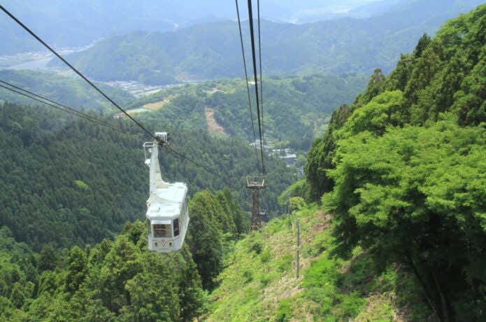 身延山の山頂へはロープウェイを使って登ることもできます。所要時間は約7分。運行スケジュールや料金は下記公式サイトで確認を。