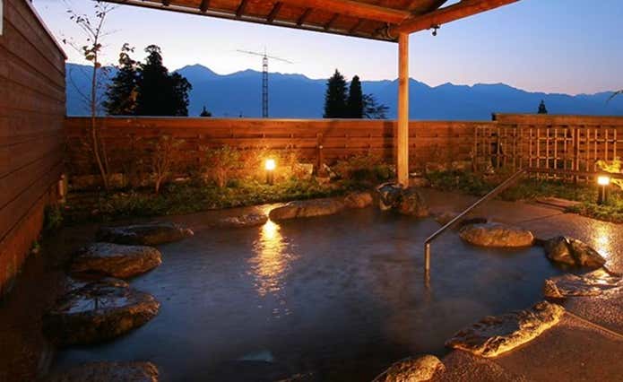 明科駅へ下る途中には日帰り入浴も受け付けている「長峰荘」という温泉宿があります。北アルプスを正面に捉えた絶景を楽しみながら、露天風呂に浸かれますよ!登山で掻いた汗を流しましょう!