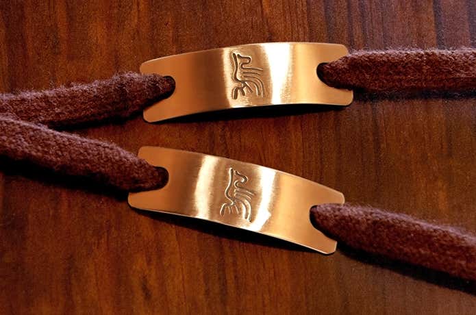 贈り物として人気があるのがシューズプレート。熊野の険しい山道を進む神武天皇を道案内したと伝えられるヤタガラスの3本足の刻印が入ったプレートで、貴金属装身具製作一級技能士の資格を持つ職人が手作りしています。靴を履くときや危険な場所で足元を見るとき、必ず目に入る場所に着けることで安全を意識することができます。ヤマノモリのグッズは公式サイトで購入できます。