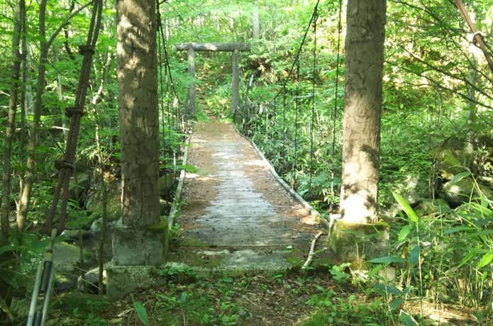 宇田沢本流にかかる吊り橋からは水のせせらぎを楽しめます。
