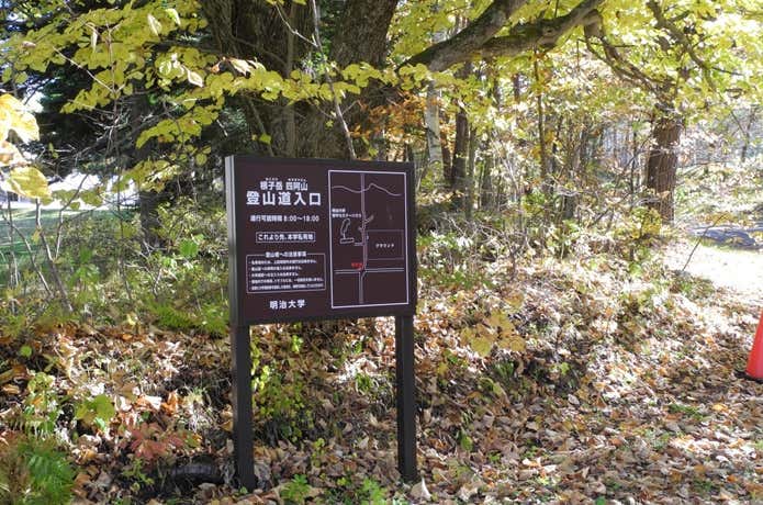 登山口には目印となる看板が設置されています。ここが根子岳~四阿山の周遊コースのスタート地点。