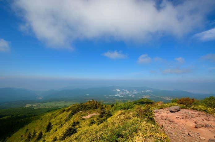 根子岳山頂からの眺めは最高。障害物のない大きな空と雄大な景色をくっきりと見渡すことができます。