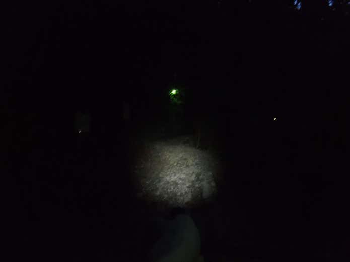 こちらがスポット。写真では分かりづらいですが、スポットにした方が、光が絞られて明るくなる印象です。ヘッドライトの方が両手が空くので、何かあったときに安全ではあります。