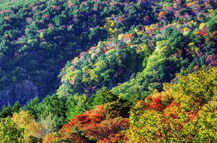 一般登山のシーズンは6月上旬から11月上旬頃。新緑が美しい6月、稜線の花を楽しめる7・8月、さらに秋には紅葉、冬には樹氷の姿など、一年を通してさまざまな景色を見せてくれます。特に10月上旬頃に見ることが出来る紅葉は必見!