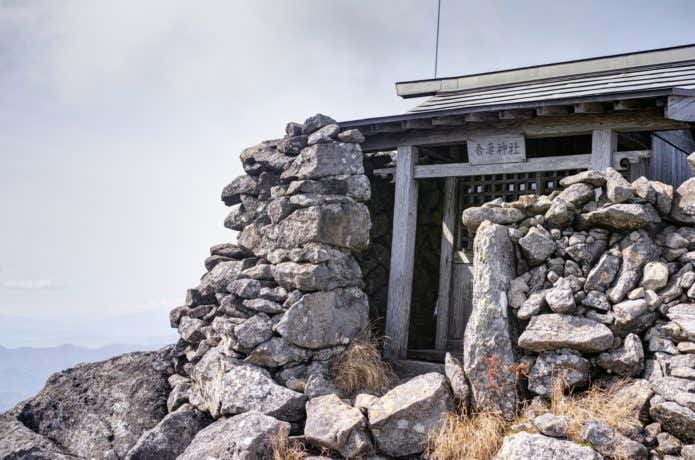 南側からはこれから向かう西吾妻山山頂が、北側からは米沢平野を一望することができます。ここにある小さな祠が吾妻神社です。