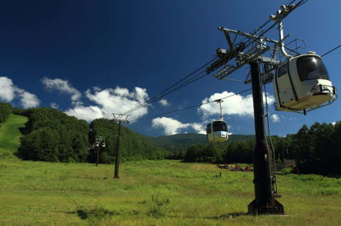 ロープウェイ湯本駅から天元台高原駅までの所要時間は約5分。そこから天元台高原スキー場のリフトを3基乗り継ぎます。到着した地点が北望台、ここから登山スタートです。