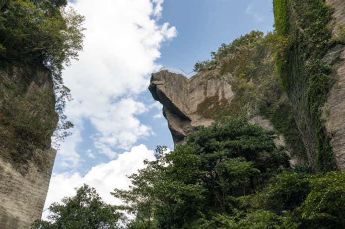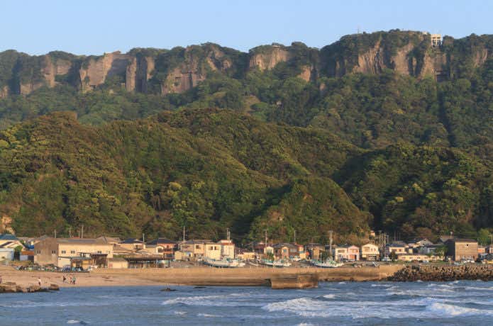 千葉県安房郡鋸南町と富津市の境目にある、標高329.4mの山。江戸時代から1985年まで建築資材として採石が盛んに行われ、むき出した採石跡の岩肌が鋸の歯に似ているため「鋸山」と呼ばれています。