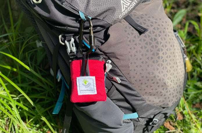 手のひらにすっぽりと収まるサイズに収納できるレジャーシートなら、いつでもどこへでも携帯できます。登山のときは、リュックにつければ必要なときにサッと取り出せて便利。普段もカバンの中にポンッと入れておけば、いざというときにとても役立つアイテムです。