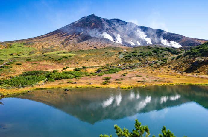 旭岳は北海道で最も高い標高2,291mの活火山。北海道にある日本最大の国立公園の大雪山国立公園の北側にあり、広い高原帯には多くの高山植物を観ることができます。標高1,600m地点までロープウェイで行くことができ散策路も整備されているため、多くの人が気軽に素晴らしい景観を楽しめます。