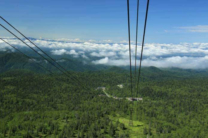 旭岳ロープウェイで5合目まで一気に上がります。眼下に広がる絶景を堪能!