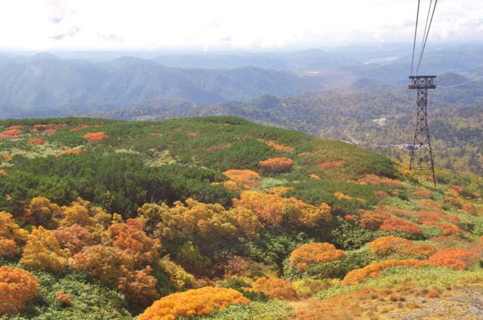 日本で一番早い紅葉が訪れる旭岳。9月上旬からはじまる紅葉は、山頂からだんだんと下に進み、約1ヶ月楽しむことができます。眼下に広がる赤、黄色、オレンジの美しく鮮やかな景色にうっとり。