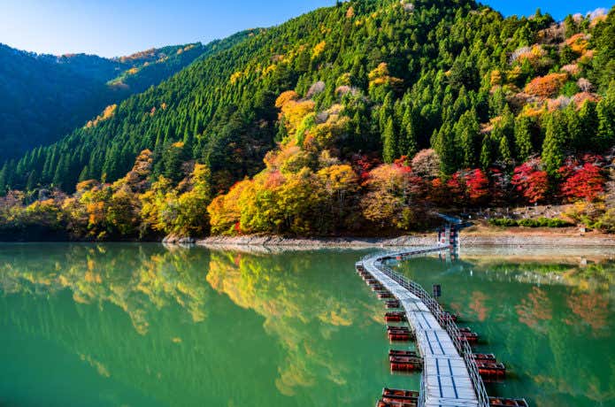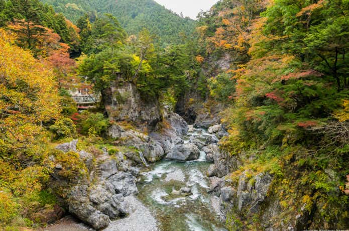奥多摩は渓谷と紅葉のコラボレーションが美しいことで有名です。赤、橙、黄色の紅葉と、澄んだ川、緑がとても鮮やか。見る人を魅了し感動的させる絶景です!