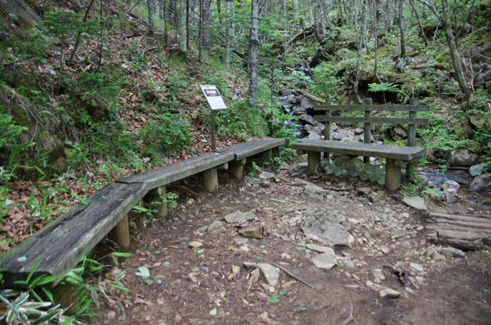 始めはよく整備された森の中の登山道からスタート。道中にはクマよけの鐘があるので、安全のために鳴らしながら進みましょう。途中に休憩スペースもアリ。5合目までは比較的なだらかな道が続きます。