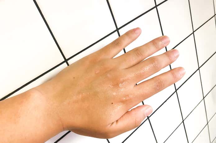 ここで1つ検証をしてみます。スーパーなどで手に入るビニール袋に自分の手を入れて、手首を輪ゴムで固定。そのまま10分ほど放置すると、だんだんビニールの内側が曇り始めます。