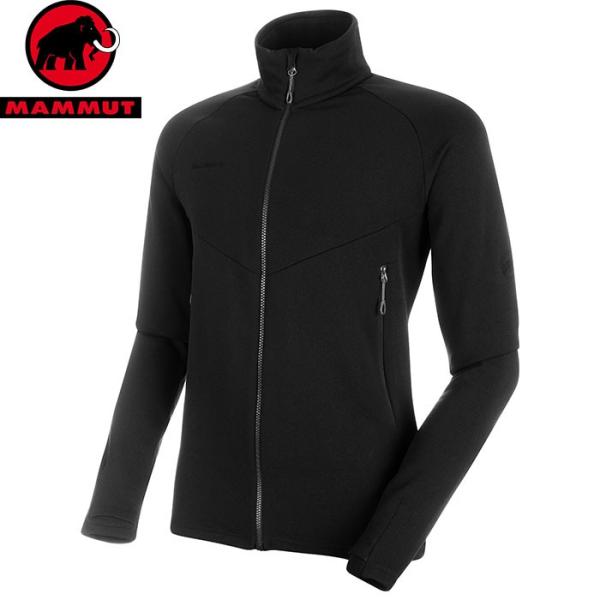 裏面が速乾性の優れた素材の薄手のマムートのフリース。スリムなデザインでアウターの中や行動着、旅行やハイキングにおすすめです。