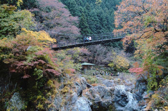 鳩ノ巣渓谷には、鳩ノ巣駅と白丸駅の間2kmほどのウォーキングコースがあります。吊り橋からの景色はお見事!素晴らしい渓谷美が楽しめるとして人気です。途中傾斜などもあるので歩きやすい靴で行くのがおすすめです。