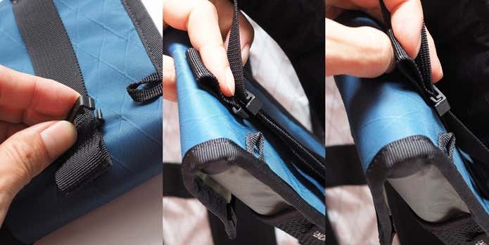 本体の重さ|単色Cell Bag(500D CORDURA):約67.25g、バイカラーCell Bag(X-PAC):約65.6g、迷彩Cell Bag(500D CORDURA):約70.5g