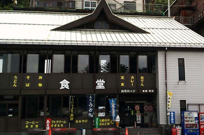 白石ロッジの目の前にあるレストハウス。食事はもちろん、お土産の品も豊富に揃っています。
