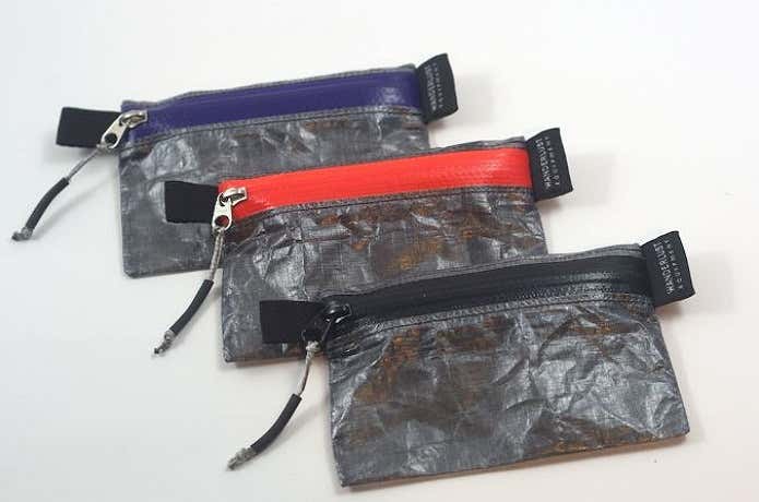 とにかく軽い、今回ご紹介した中では最軽量の5g! ジッパーはカードが出し入れできる長さで、お札は3つ折りで収納。小銭が取り出しにくいのは、入れない習慣を付けるためという、なかなか尖った財布です。ULハイクやトレランで軽量化を重視したい方におすすめ。