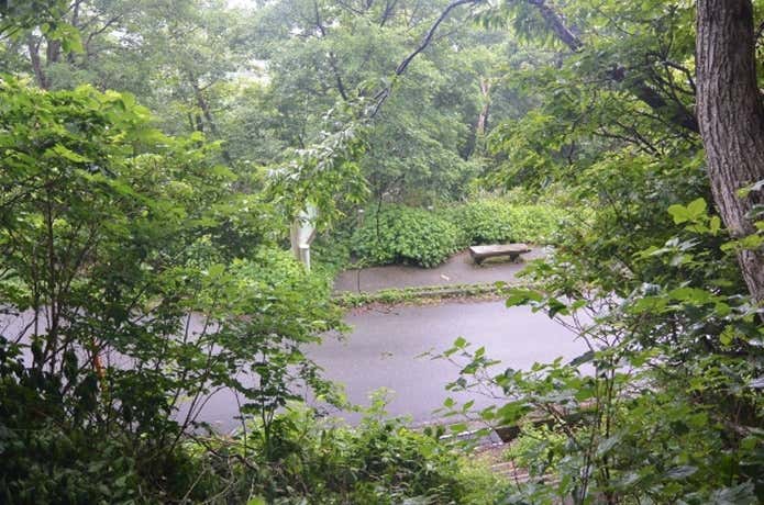 奥医王山までの中間地点となる夕霧峠には、トイレと展望台がある休憩スペースになっています。
