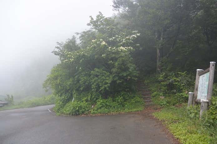 西尾平駐車場からスタート。トイレ付きの休憩所は風雨の凌げる小屋になっています。駐車場の近くにある登山道へと進みましょう。
