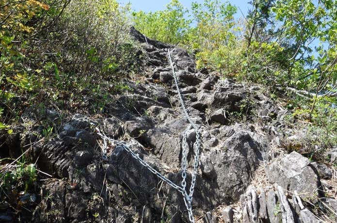 長丁場の鎖場が続くので、下山では利用せず、別のコースを取るのが無難です。