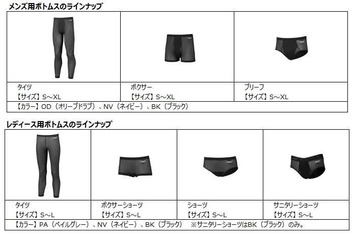 レディース用はオリーブドラブ以外の3色。お腹やお尻が冷えずに、適度な保温性でふわっと包み込みます。”もしも”の時には、ズレやヨレにくいサニタリーショーツで万全な備えを!