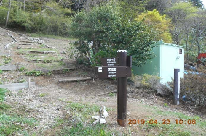 山頂の景色を堪能し、十分に休憩をとったら下りへ。下り始めて50分で宮城野分岐に出てます。