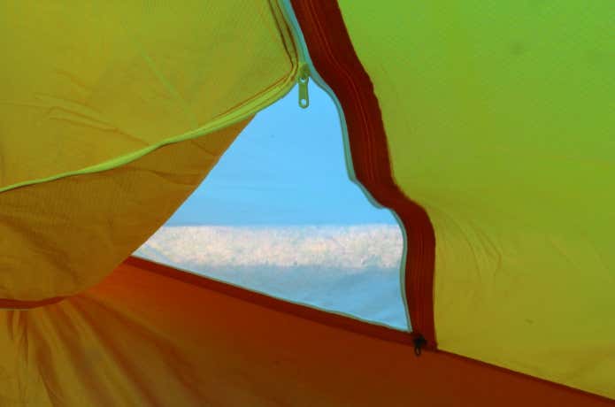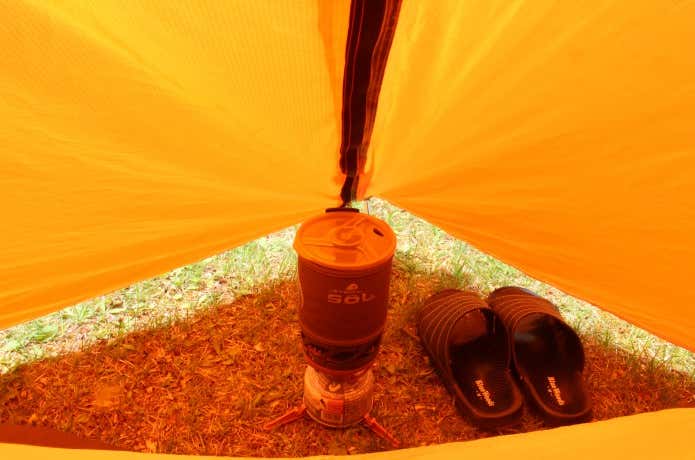 最初に選ぶテントは後者のダブルウォールタイプが◎! 内部と外界の間に2枚の壁ができるため、入り口には「前室」と呼ばれるスペースが生まれ、調理や荷物置き場にも使える空間となります。