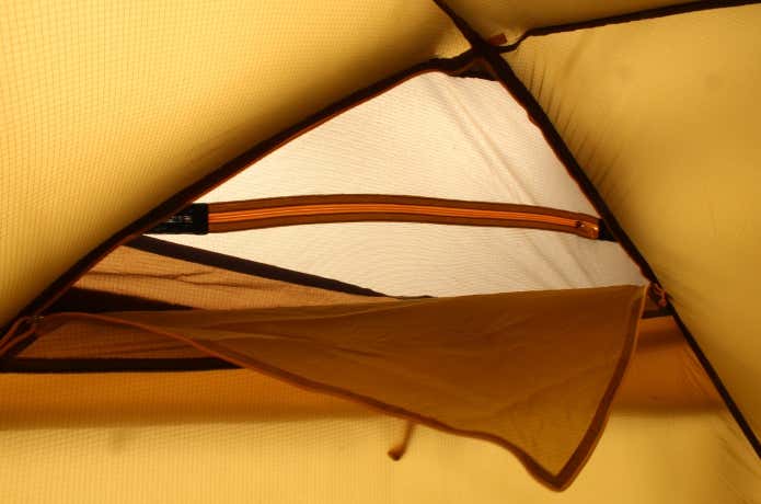 短辺側に設けられた入口は、険しい山での厳しい環境下で機能を発揮する考え抜かれた設計に。シンプルでありながらも2人分のしっかりとしたスペースが確保できます。