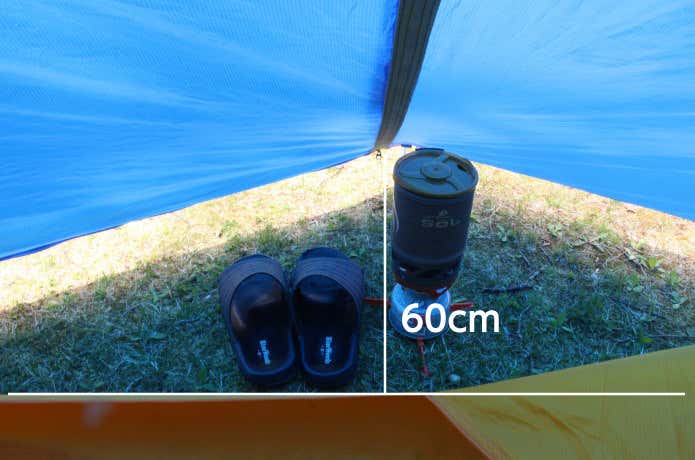 横入口タイプなので、前室の広さは魅力的。フライシートの形状の違いにより、奥行きが同じ60cmのニーモアトム2Pと比べるとやや狭い印象を受けました。
