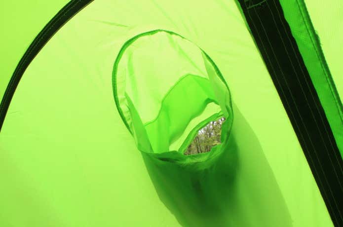 前室側のフライシートにも吹き出し式のベンチレーターが備わっており、降雨時なども効果的な空気の循環が可能です。