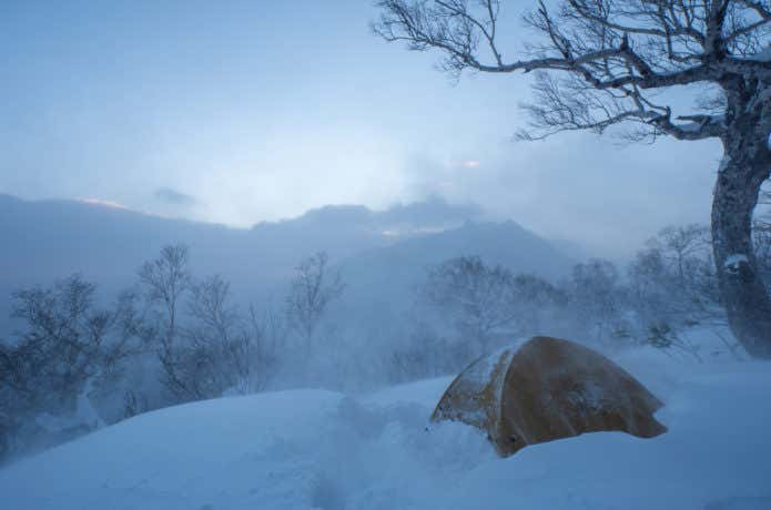 アトム2Pは雪山用のフライシートがないため、雪が吹き込むような冬山での使用は不向きです。しかし雪上での使用は機能的に問題ないので、雪が固まった残雪期などは使えるでしょう。