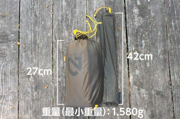 他のテントと比べるとやや重さが気になるところですが、これも耐久性を重視している証拠でもあります。収納袋は、本体とフライが別収納できるので、雨天でフライシートが濡れてしまったときに重宝。ザックに収納する際に、かさ張りを気にする心配もありませんでした。