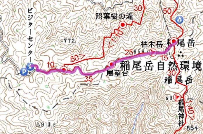 西口登山口(110分)→稲尾岳(100分)→西口登山口