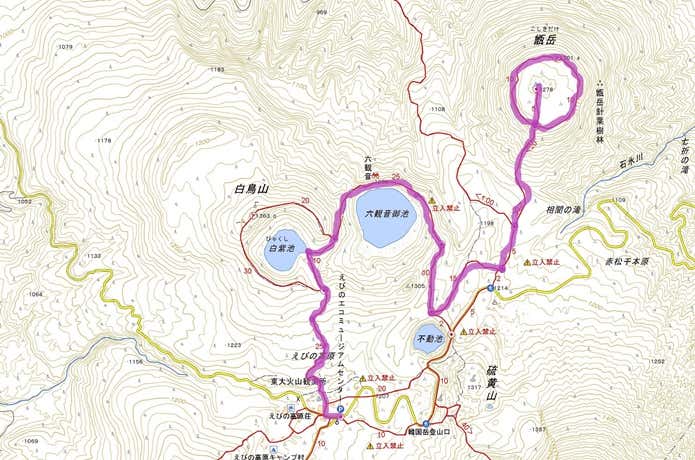 えびのエコミュージアムセンター(120分)→甑岳<火口周遊(25分)>(110分)→えびのエコミュージアムセンター