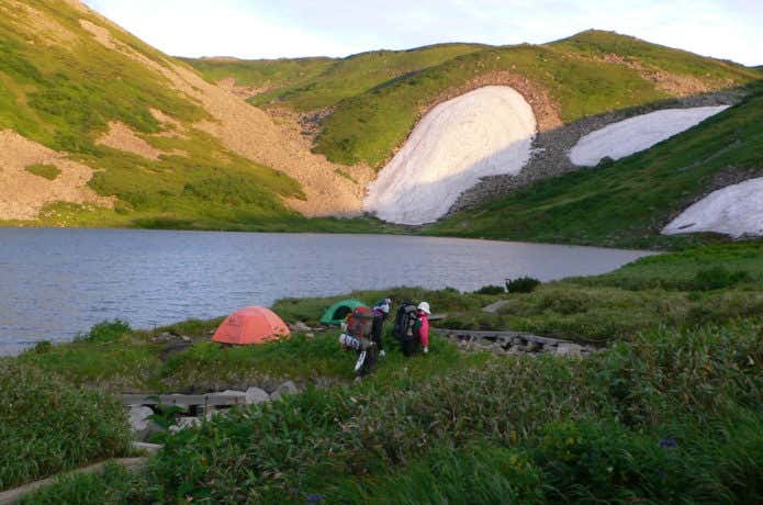 人気があるため、到着が遅くなるとテントを設営できない場合も。また、湿原ですので、雨が降るとテントに水が入りこむことも。早めの時間に到着し、水が流れたり、溜まったりしたあとを避けて、安全な場所にテントを張りましょう。