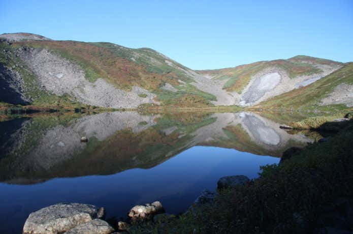 池がある場所は窪地である場合が多く、そこには水も石も集まって来ます。テントを張る前に、水の流れたあとや水たまりの形跡、斜面を転がって来たであろう石など、よくまわりを観察して安全な場所を選ぶようにしましょう。