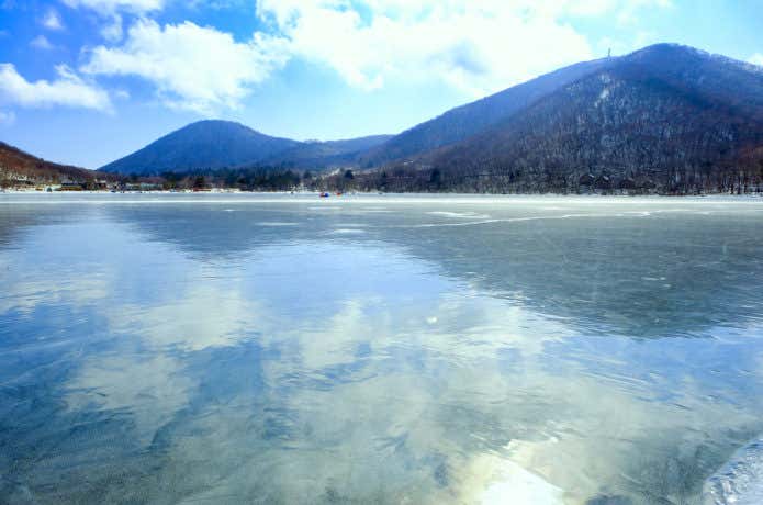 大沼は、赤城山の火山活動によって出来たカルデラ湖。そのため周囲を山に囲まれています。そんな山々が水面に映り込むさまが美しくいことで人気です。冬には池の上でワカサギ釣りもできますよ。
