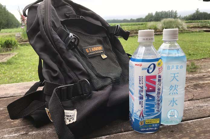標高が高くないので暑いため、スポーツドリンクを多めに。汗はかきにくい体質なので、予備のお水はそこまで多くなくてもよい