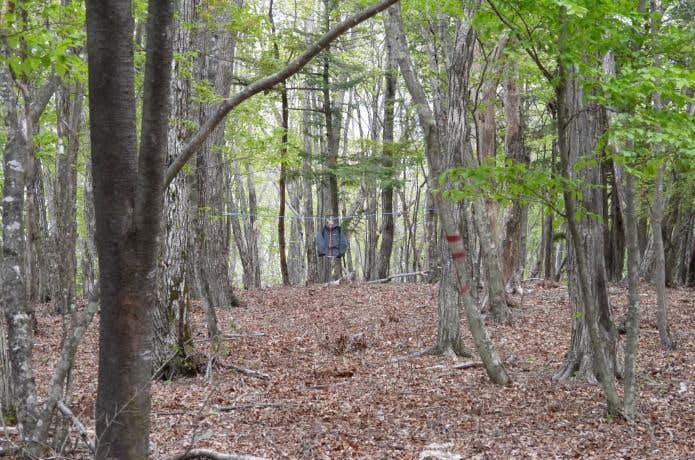 背景の木の幹と重なり、ほぼ同化しています。バックパックも含めて黒系のコーディネートだったら、動物や岩と見間違われても不思議ではありません。
