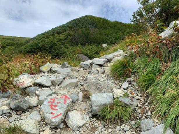 《40》登山道がゆるやかなガレ場に変わると、山頂まであと少し。