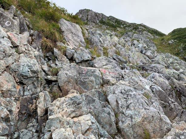 《21》ルートを示すペンキマークを見落とさないように登りましょう。