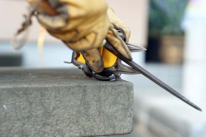 爪の両サイドを均等に研いで、先を尖らせていきます。