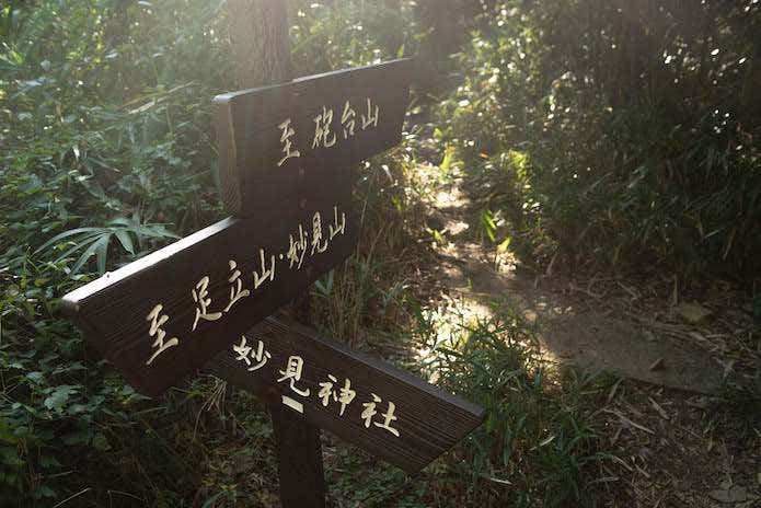 足立山の西南西にある、442メートルの小さなピークが砲台山。太平洋戦争時に、戦闘機を撃墜するための高射砲が設置されていた、比較的新しい遺構です。麓の妙見神社の参拝者用駐車場が利用できますが、必ず社務所に届け出ましょう。山頂までは1時間程度の道のりです。