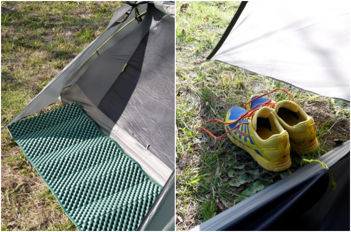 徹さんの言葉を先に紹介した通り、前室の広さがニンジャテントの最大の特長です。幅53cmの[Zレスト]を置いても、すっぽり収まる奥行きがあります。この広いスペースは、単に荷物置き場を広くしたのではないようです。