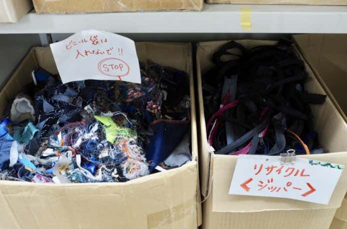 これらはサンプル品などユーザーの手に渡らなかった製品。でも修理用のパーツに使えるものもあるので、ストックされているのです。修理をするための素材もリサイクルからという徹底ぶり! そして作業場にしては糸くずも落ちておらず、きれいなのですが……。